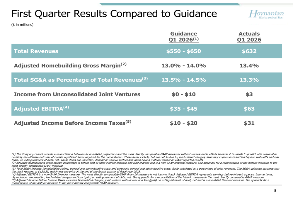 Hovnanian Q1 2026 slides: earnings beat masks margin pressure