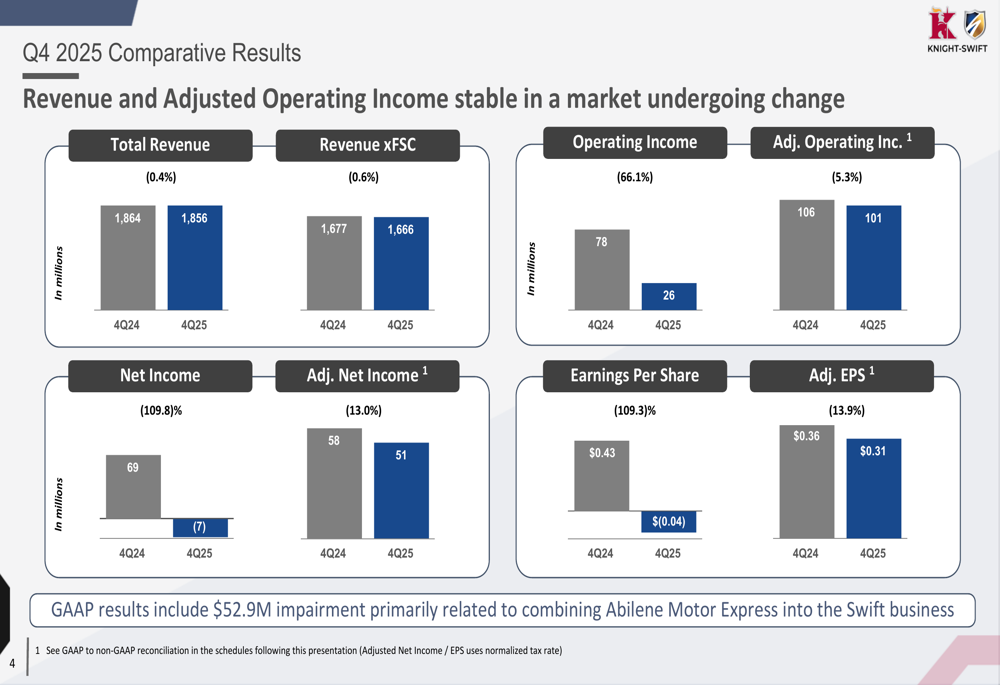 Knight-Swift Q4 2025 slides: Adjusted EPS falls short, integration costs weigh on results